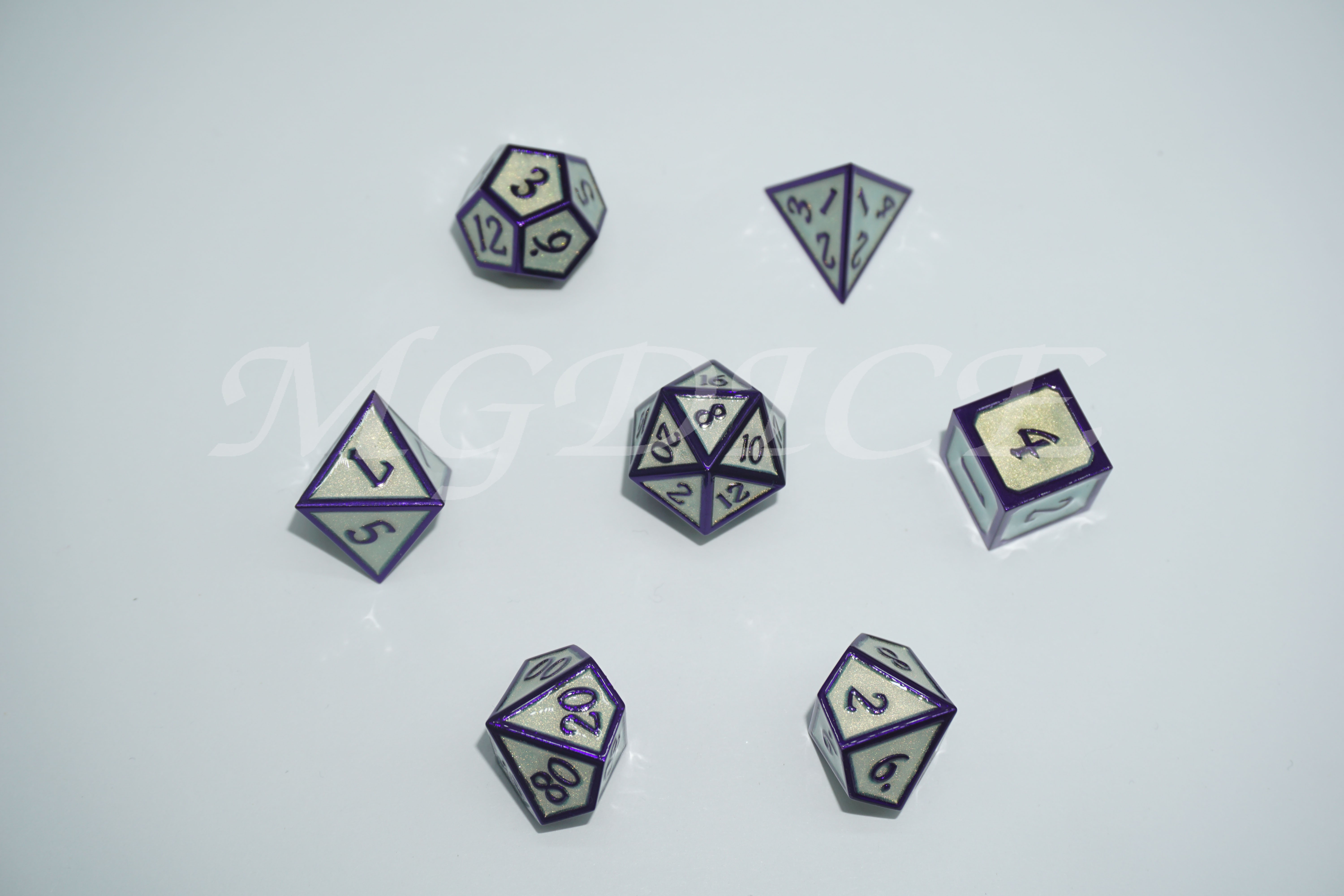 Metal 3D style dice set : Purple glitter with rose gold rim