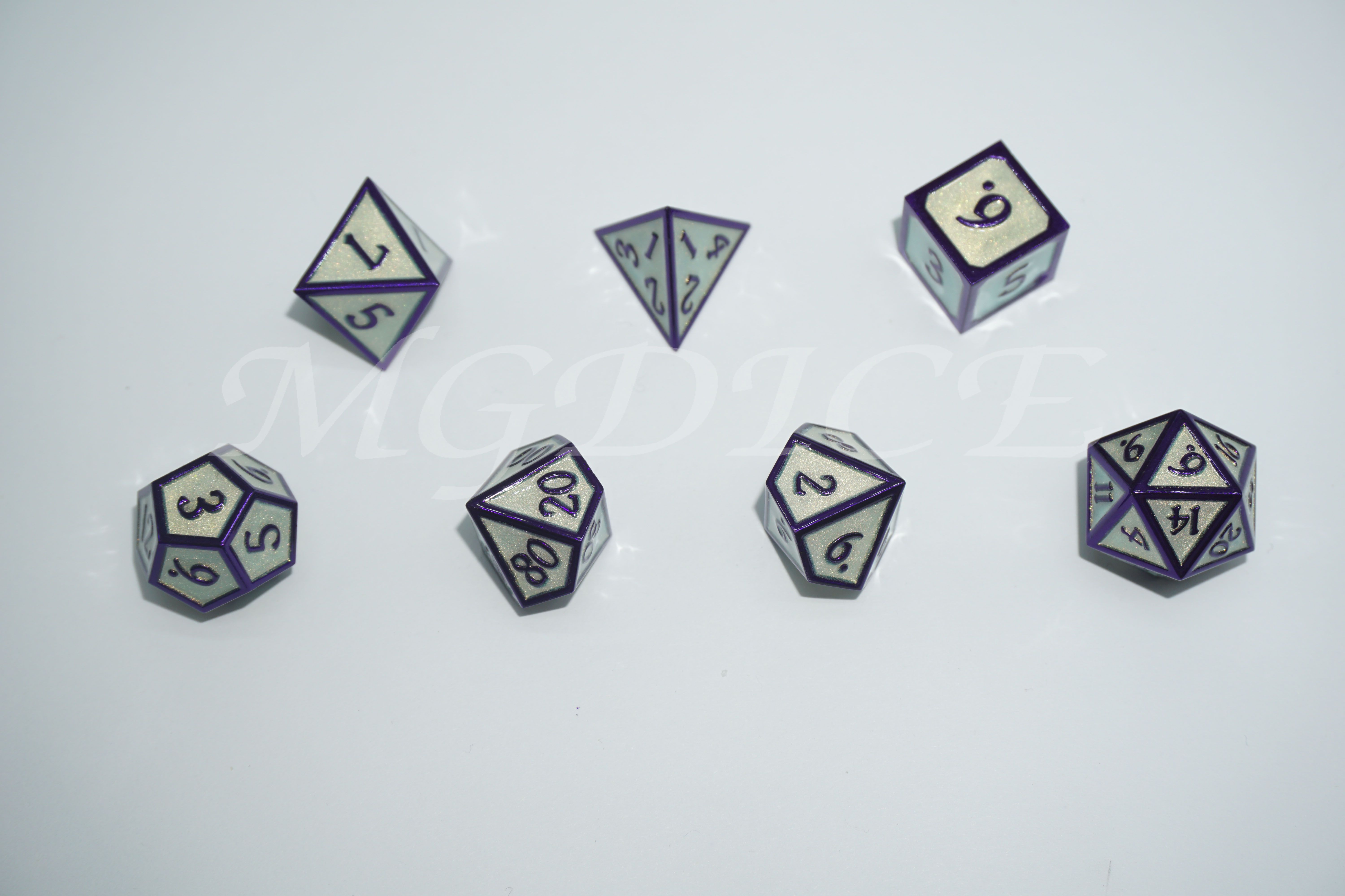 Metal 3D style dice set : Purple glitter with red rim